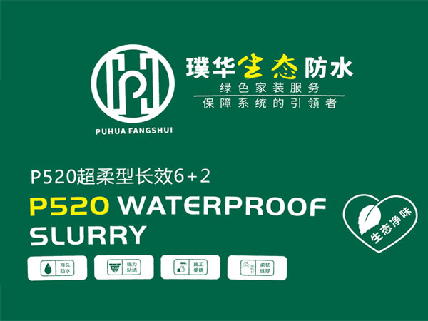 璞华生态防水P520超柔型长效6+2防水涂料,它采用橡胶乳液为主液料,晶硅粉,特种石英砂等为主粉料。混合精制而成的聚合物双组份柔性防水涂料。本产品绿色无味儿,防水性能优异。施工后形成一种柔性的防水涂膜,与混凝土砂浆有良好的粘结能力,能适用于物体结构轻微变异的多种基面施工。是家装防水材料产品中的精品。
