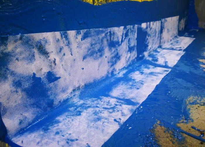 先铺设一层聚酯布作为加强层,再涂刷防水涂料(如聚氨酯),后覆盖第二层聚酯布。此方法适用于地下室或水池等长期浸水环境。